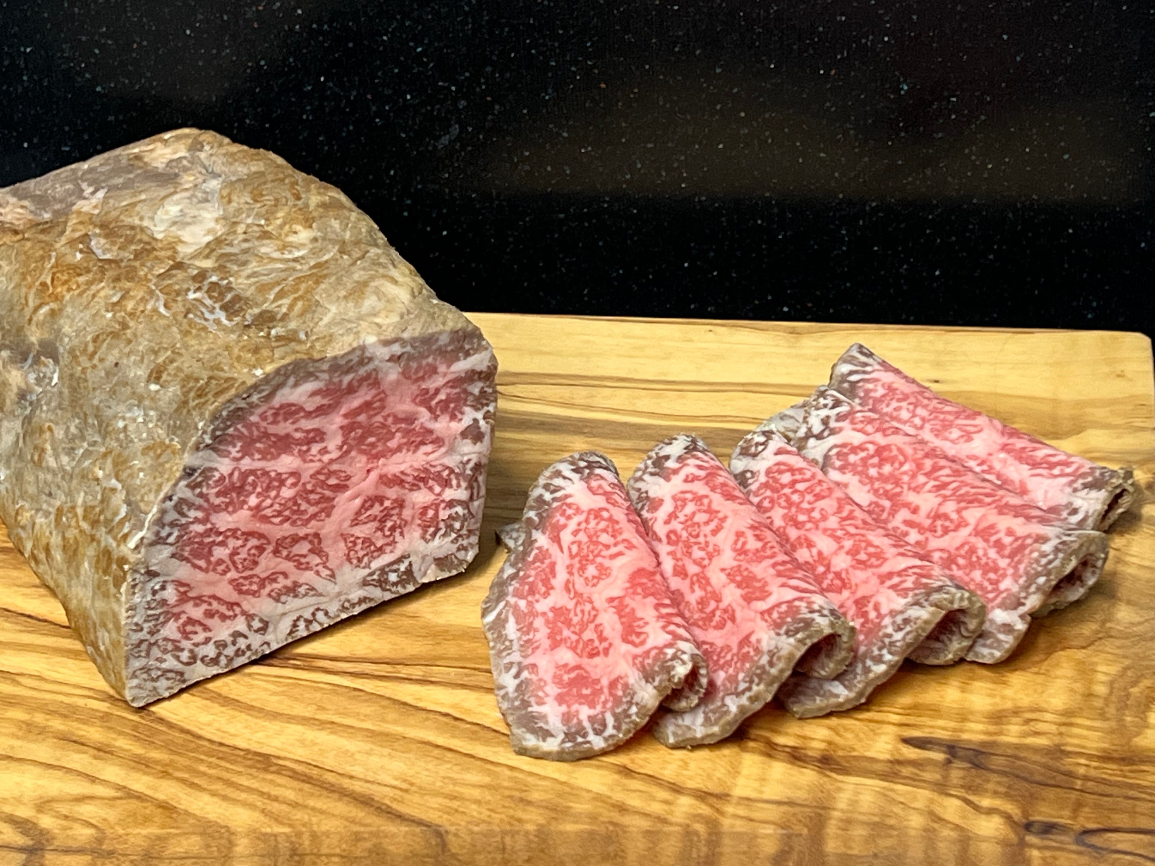 定められた厳しい基準をクリアした黒毛和牛をさらに厳選して選び三段階の温度調節にてじっくり焼き上げたこだわりの赤身ローストビーフ。口に運ぶたび赤身肉特有の濃厚な味わいと田野屋白鯆天日塩にしか引き出す事の出来ない黒毛和牛の旨味と天日塩を詰め込んだこだわりの人気ローストビーフです。