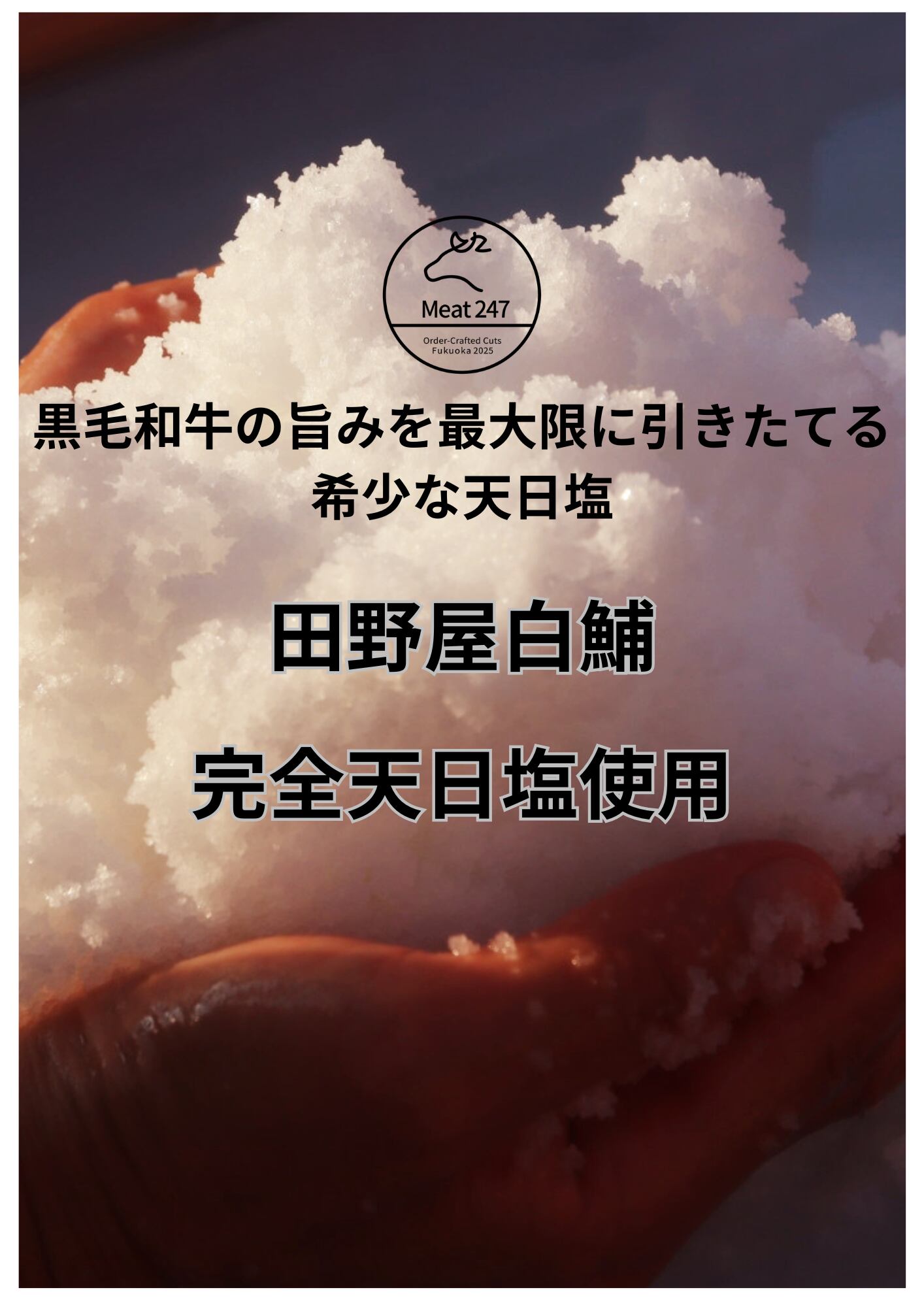 口の中で広がる黒毛和牛の風味と旨味、黒毛和牛の旨みを引き立てる田野屋白鯆天日塩の旨味。