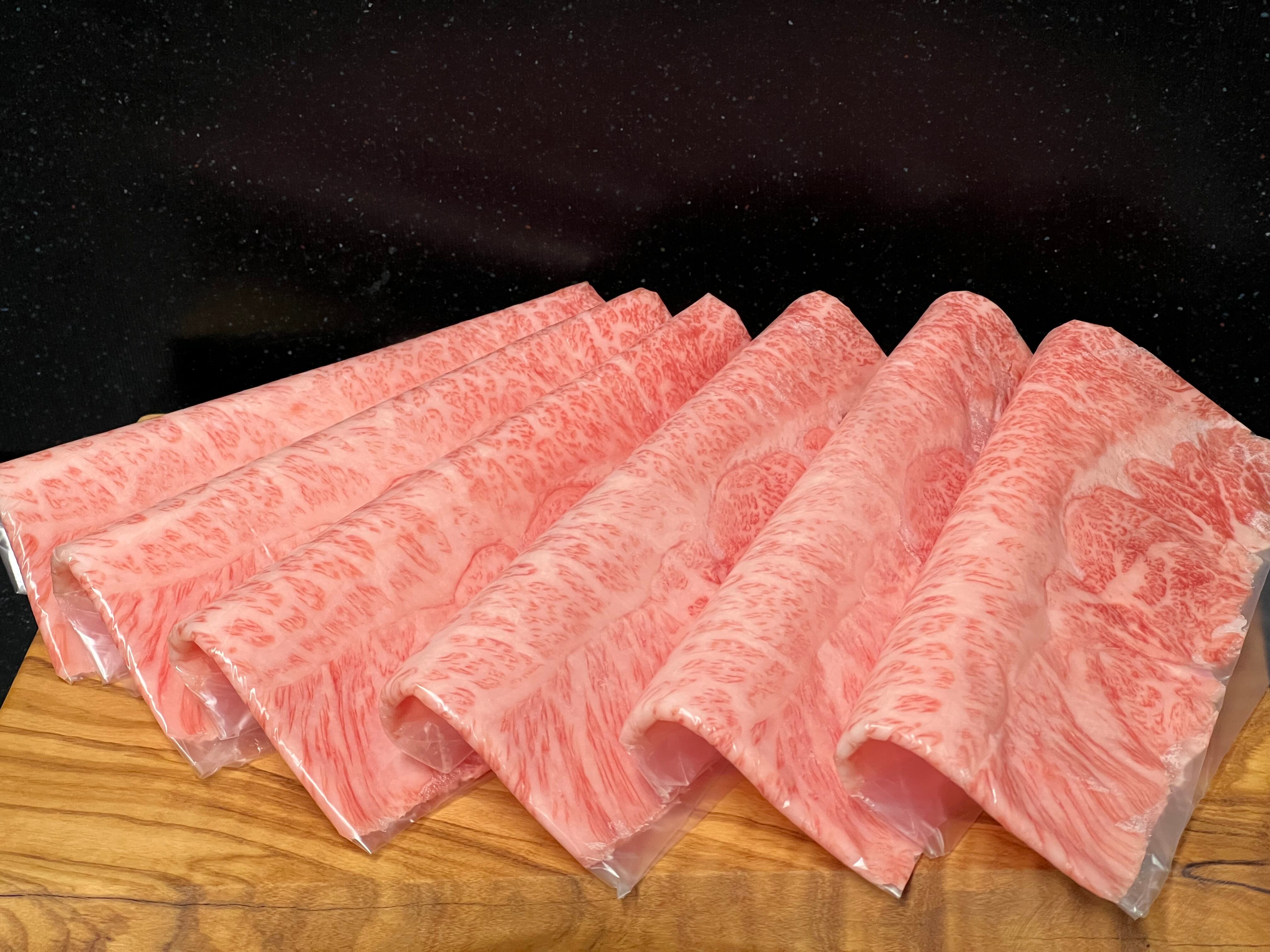 ミスジは細かな霜降りと柔らかな食感が魅力的な部位となっておりステーキや焼肉などで食べていただく事の多い部位ですがそのミスジを贅沢にスライスにしてお届け致します。
